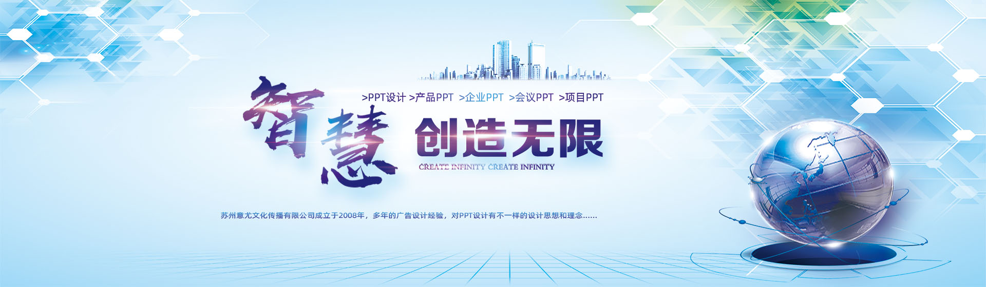 蘇州意尤文化傳播有限公司是一家有著多年廣告設計經驗的蘇州知名廣告企業 主要業務有蘇州PPT設計、蘇州產品PPT設計、蘇州企業PPT設計、蘇州會議PPT設計、蘇州項目PPT設計、企業VI設計、設計印刷宣傳冊/樣本/單頁/名片等 自2007年成立以來,蘇州意尤廣告公司與蘇州及蘇州各市的幾百家中外企業進行了廣告設計合作,經過多年發展公司已形成了以企業PPT設計、企業VI設計,廣告設計,廣告印刷,樣本設計,宣傳冊設計,名片印刷,菜譜制作,單頁,宣傳單等一批特長業務,相信在各位新老客戶的關心下,本公司會得到更大的發展,同時為客戶的發展宣傳保駕護航。